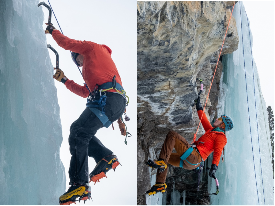 Cline River Gallery. Two ropes on Pure Energy on the right, two more ropes on the ice smears on the left ramp.