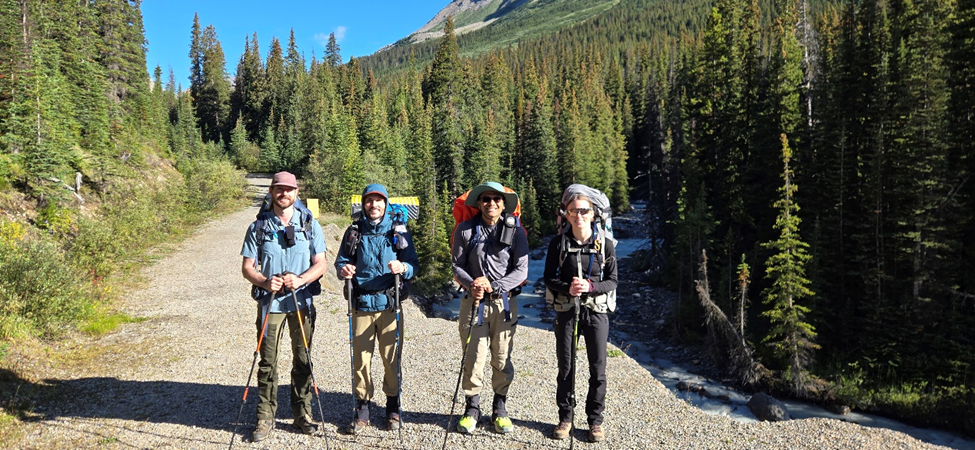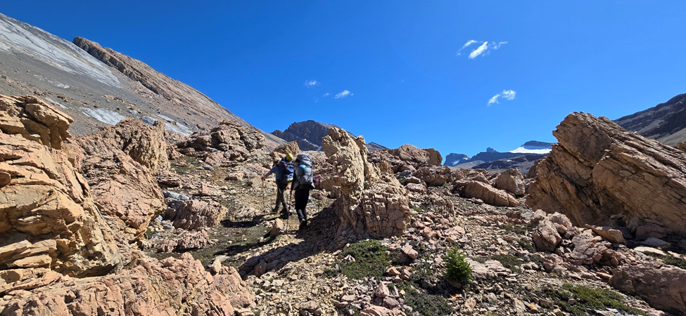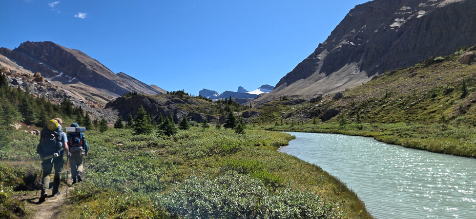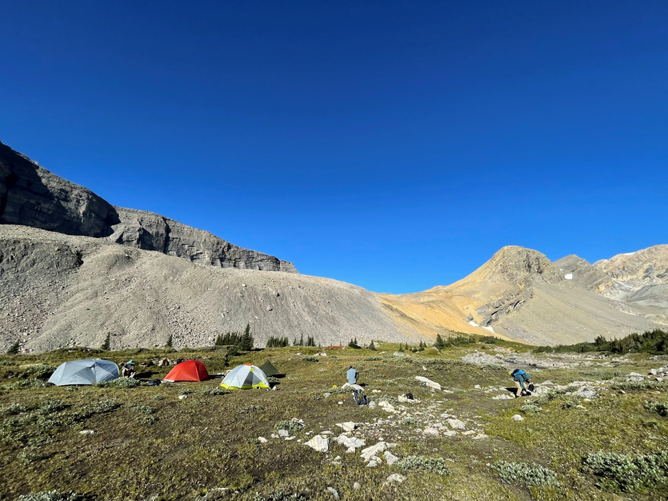 On the way into Nigel Pass, we were warned about a mama grizzly and her cub on the trail. Although we observed many signs of root grubbing and some scat on the trail throughout the trip, we did not have any encounters.