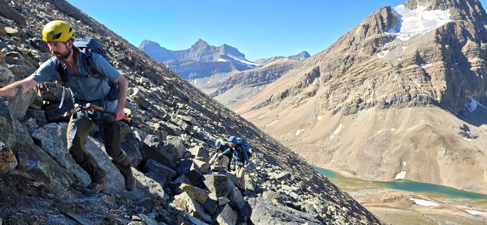 On August 21-24, four members of the ACC Edmonton section traveled to the White Goat Wilderness Area to scramble the remote Mount Willis and Mount Stewart.